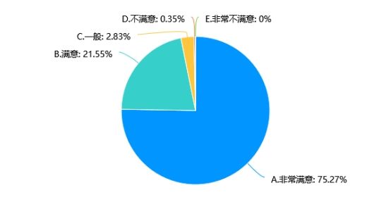 調查結果顯示,75.27%的學生對目前所學專業的課程設置表示非常滿意,21.55%的學生表示滿意,整體滿意度高達96.82%。這表明大部分學生對課程內容和安排持積極態度。
